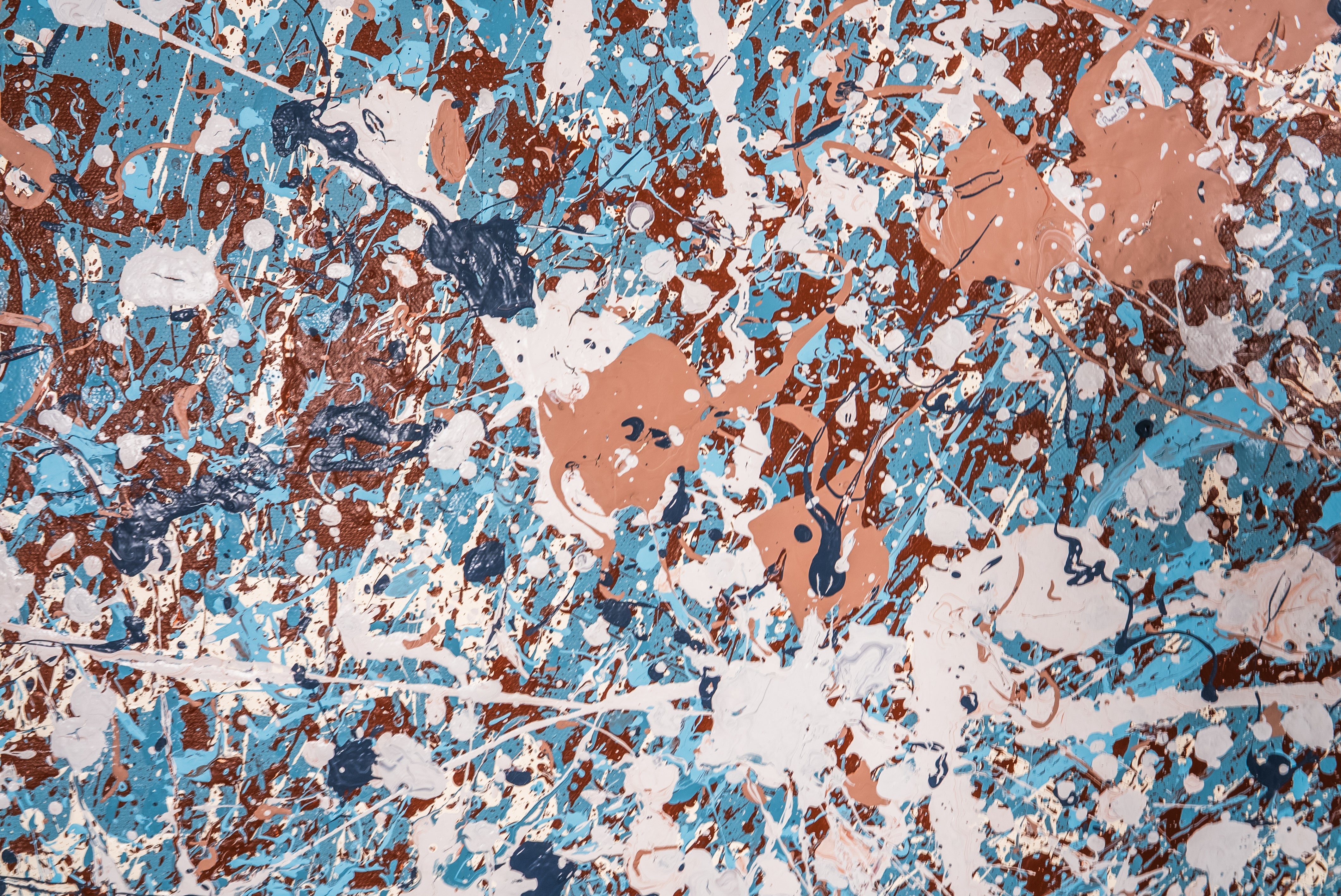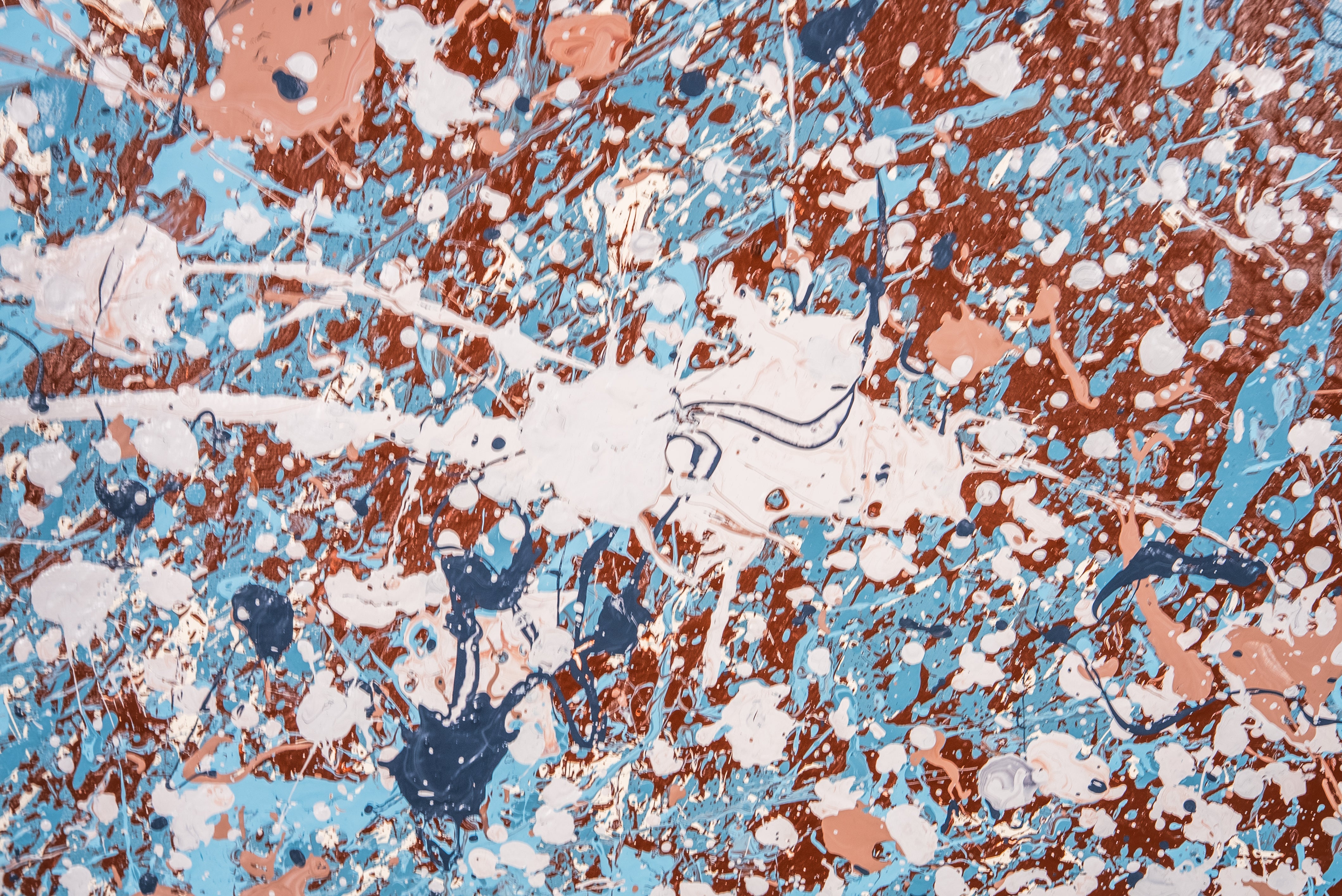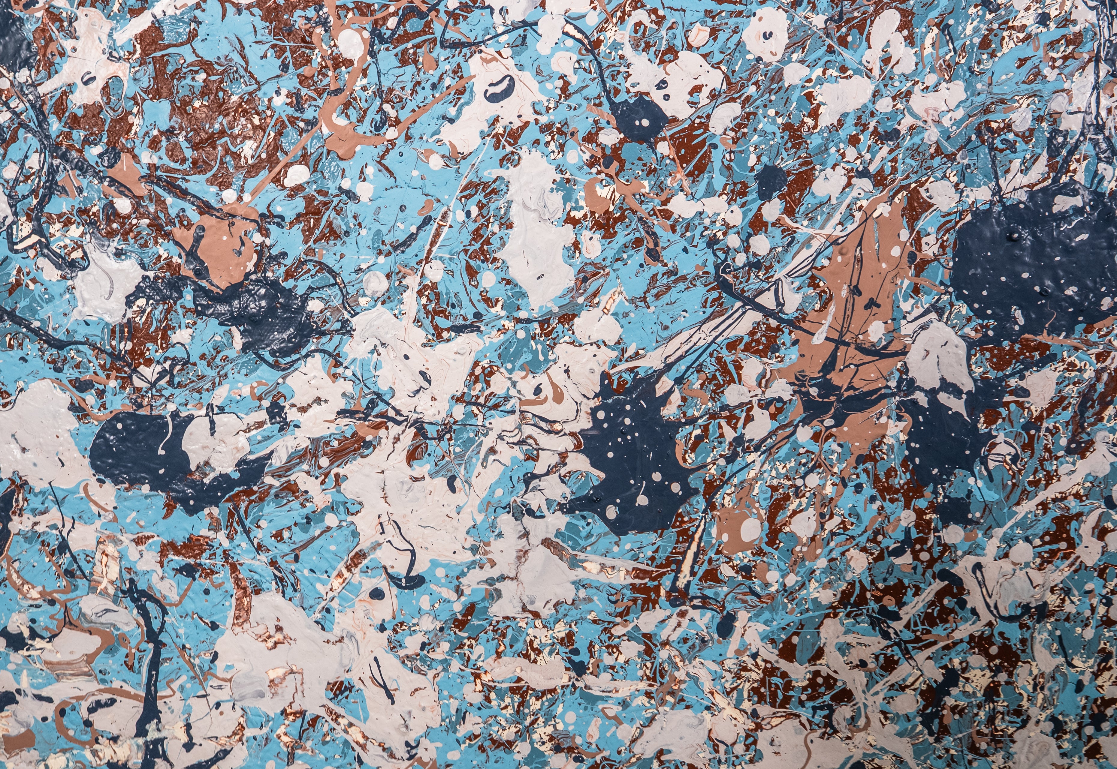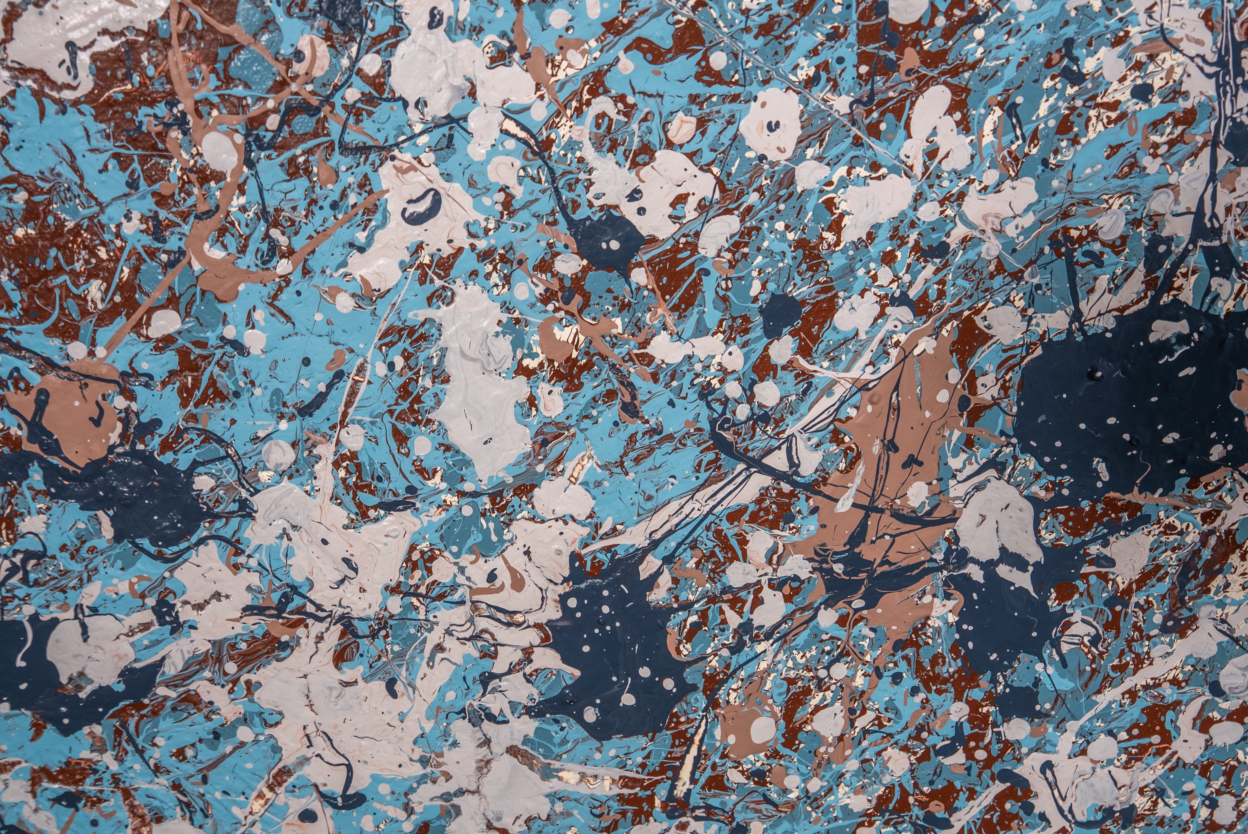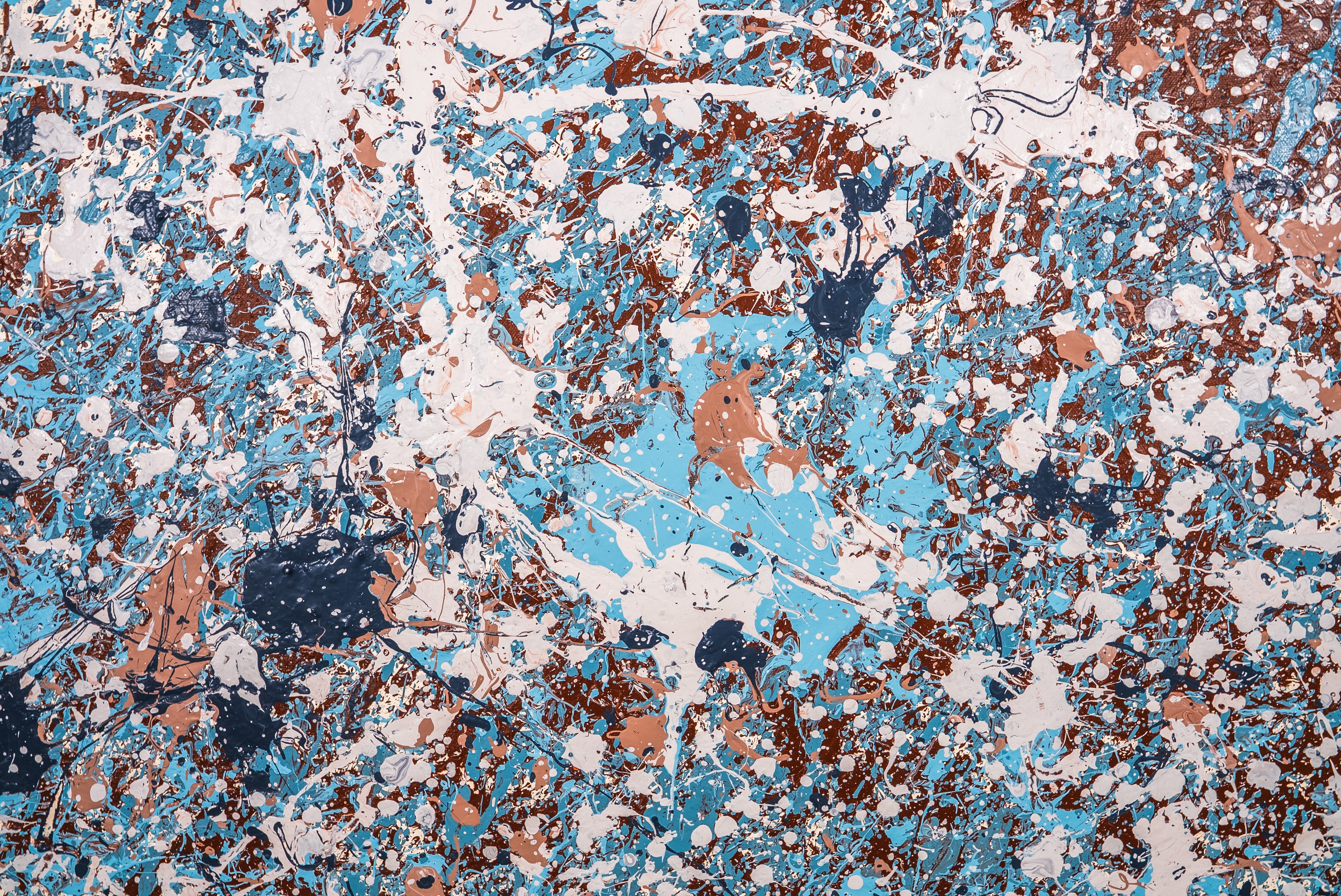 For this project, our team was suspended from a crane that lifted from 6-75ft off the ground. (9) 36" x 36" canvas were arranged below, and meticulously splattered from various Heights, creating elegant patterns of overlapping paint. This act was performed to see how we could push ourselves as artists - with the intent of spreading peace. This specific color palette is soothing, freeing, and inspires hope. These pieces look elegant on the wall in any home or business looking to bring their indoor environment to life. Upon the completion of these works, our crane operator compared these to the works of Diego Rivera & Picasso.