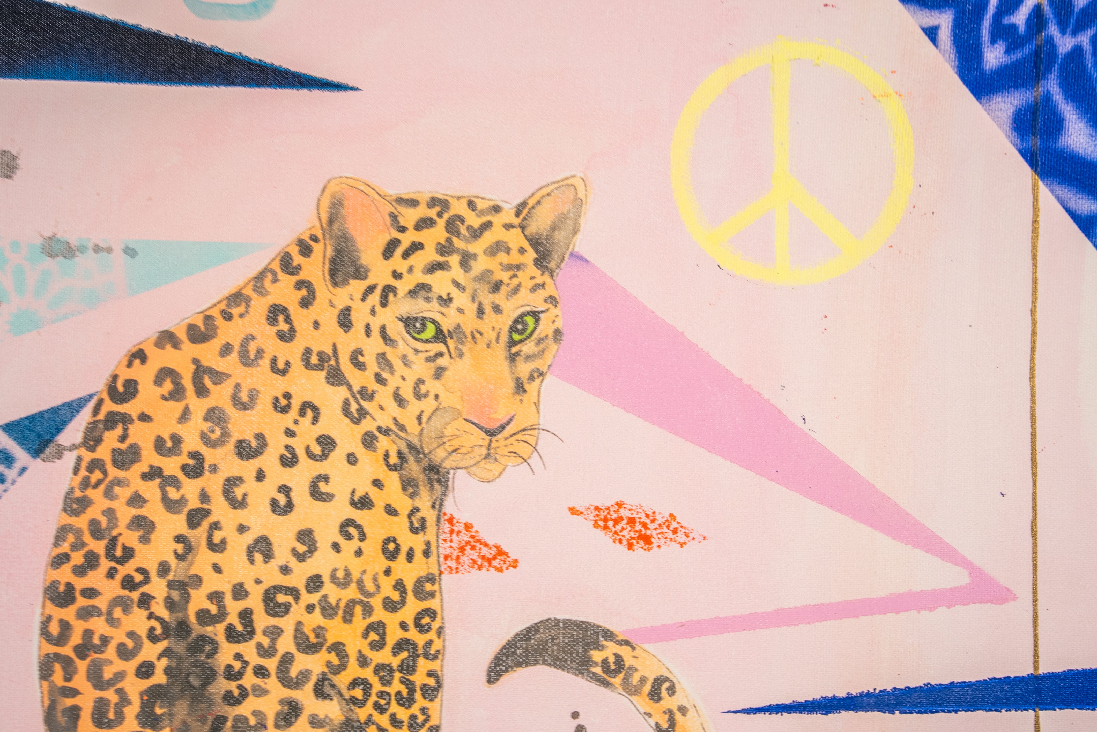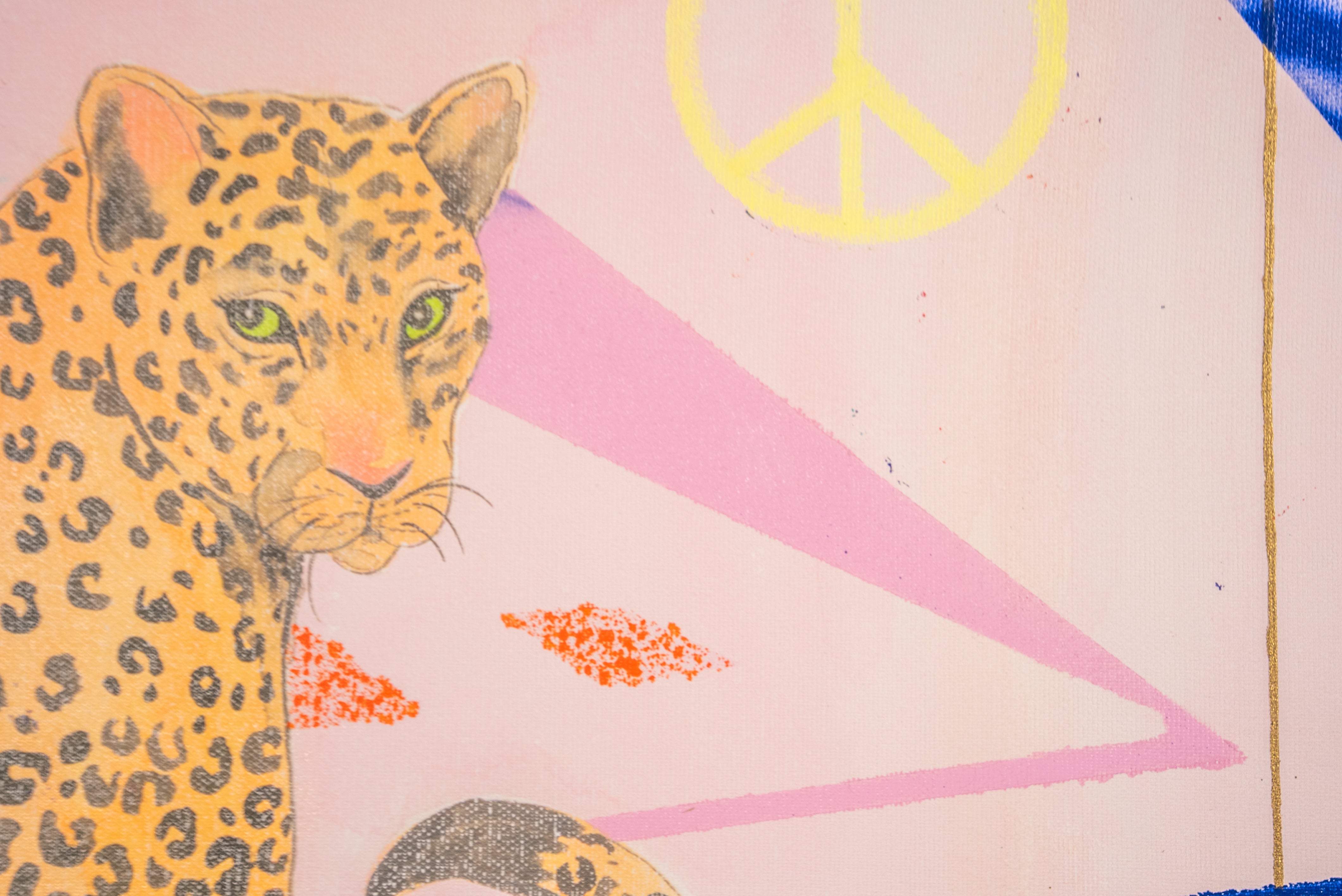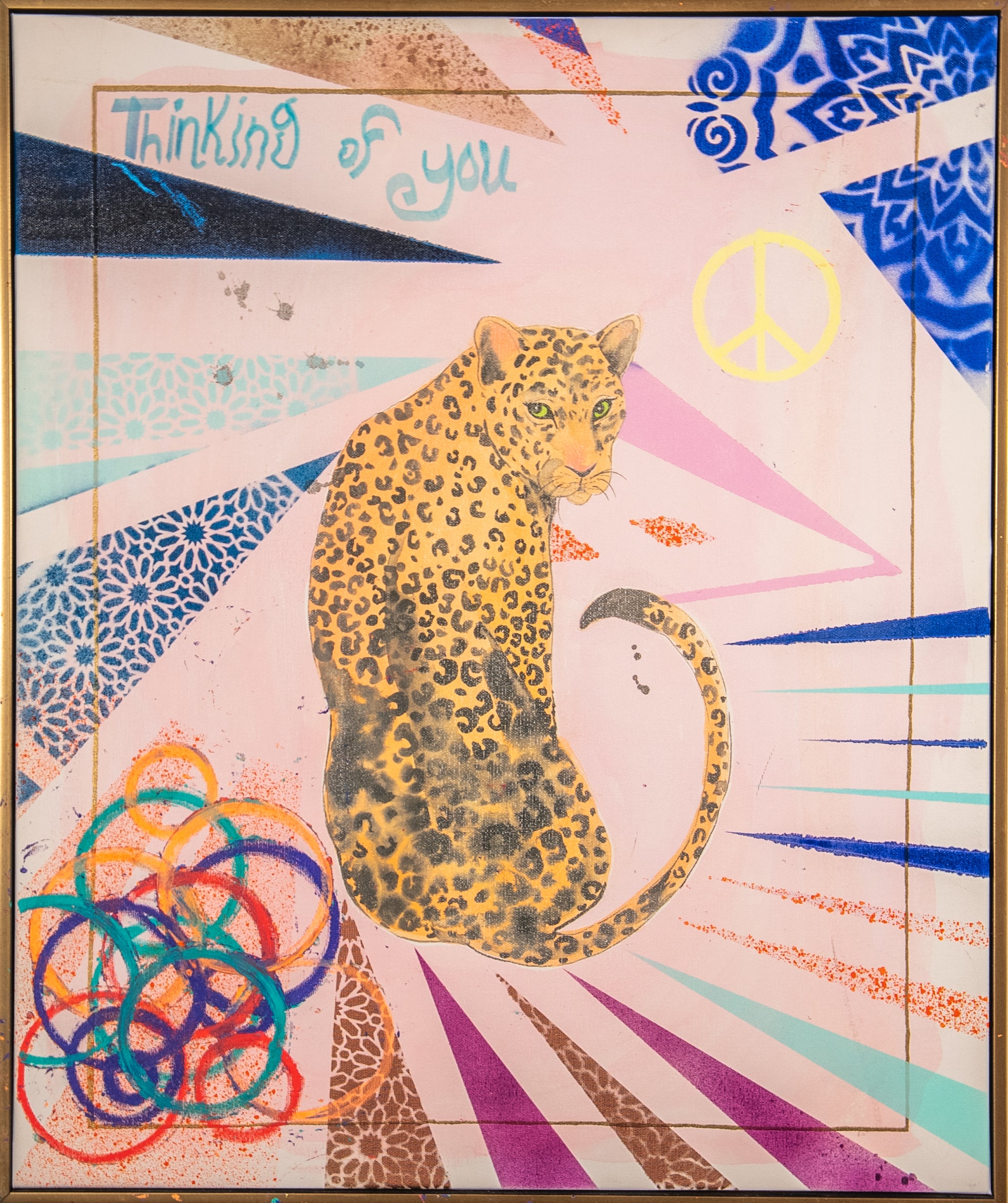 The cornerstone of the collection, ‘We Want World Peace’ fuses numismatics and street vernacular into a civilizational thesis. The embedded $2 bills act as both artifact and argument, while the gestural field insists that aesthetics can underwrite ethics. This is not a poster; it is policy in pigment.