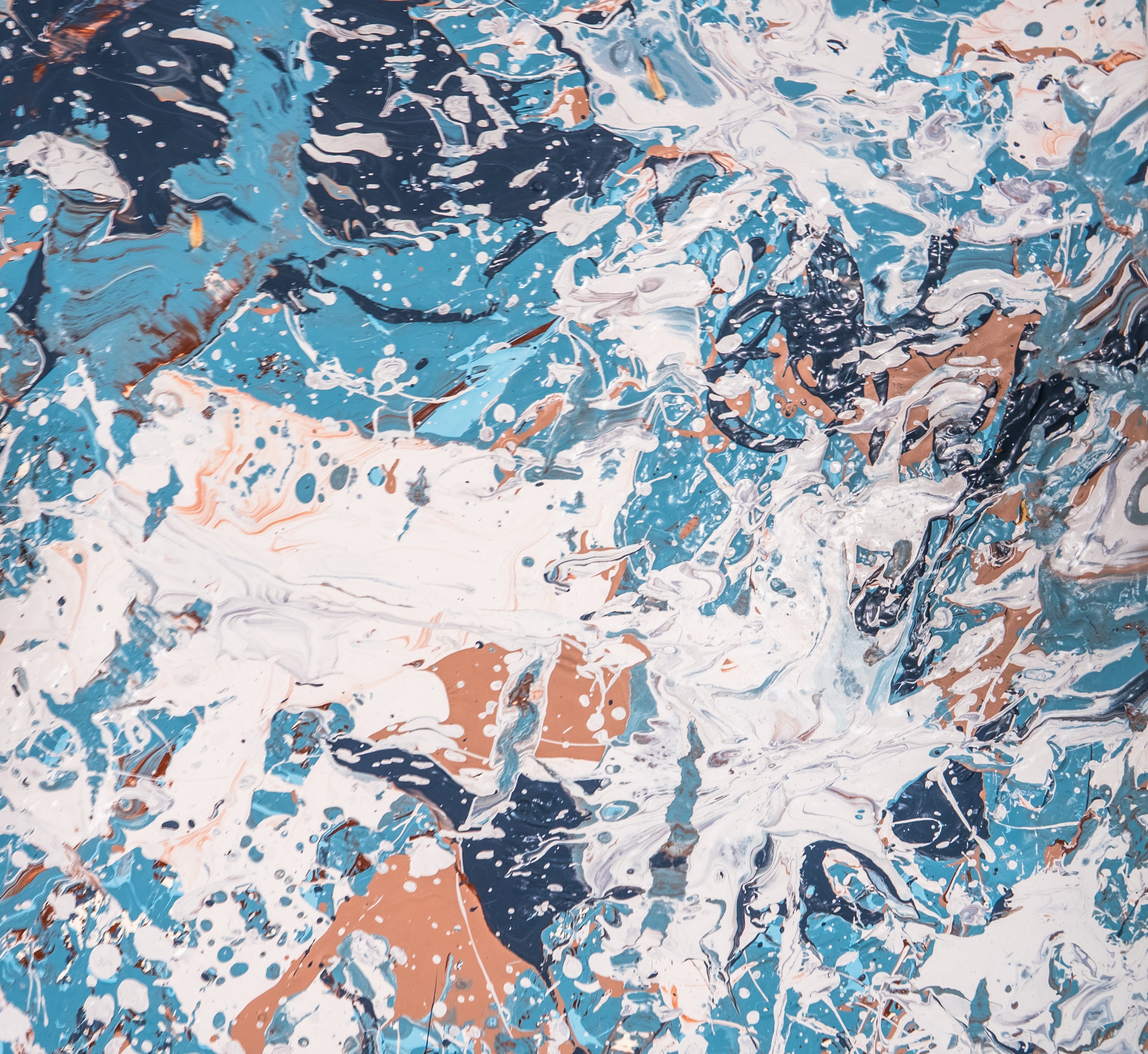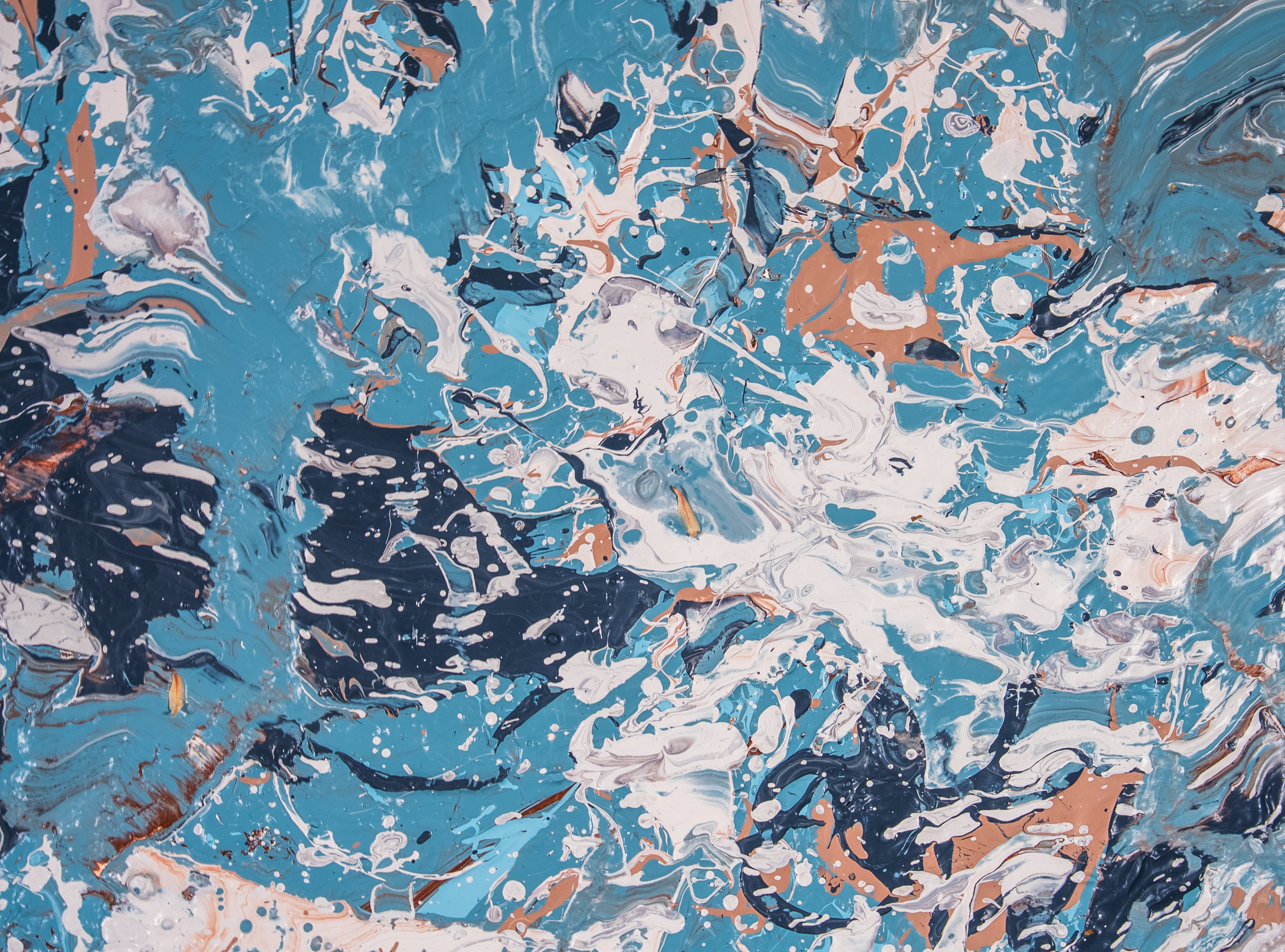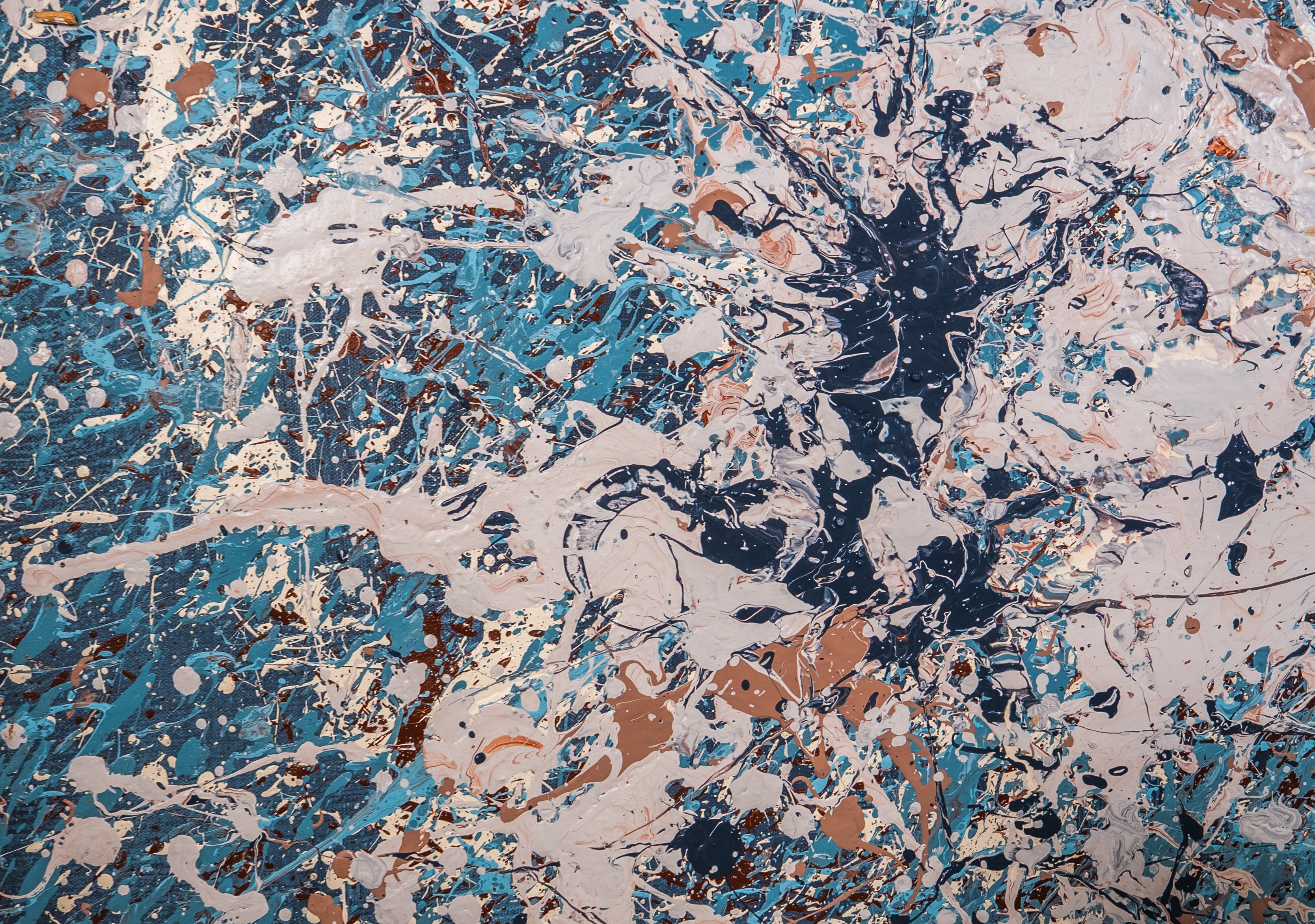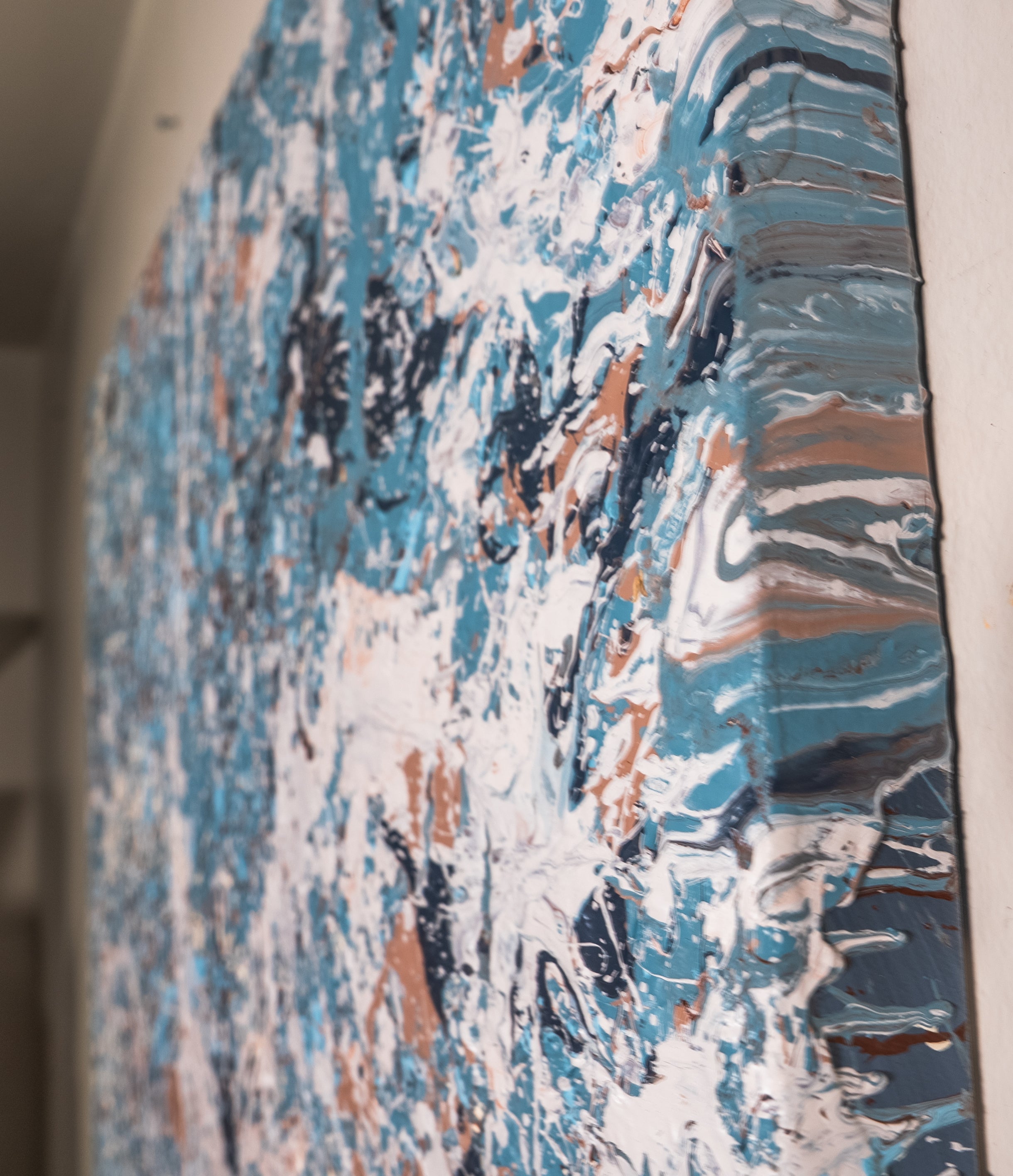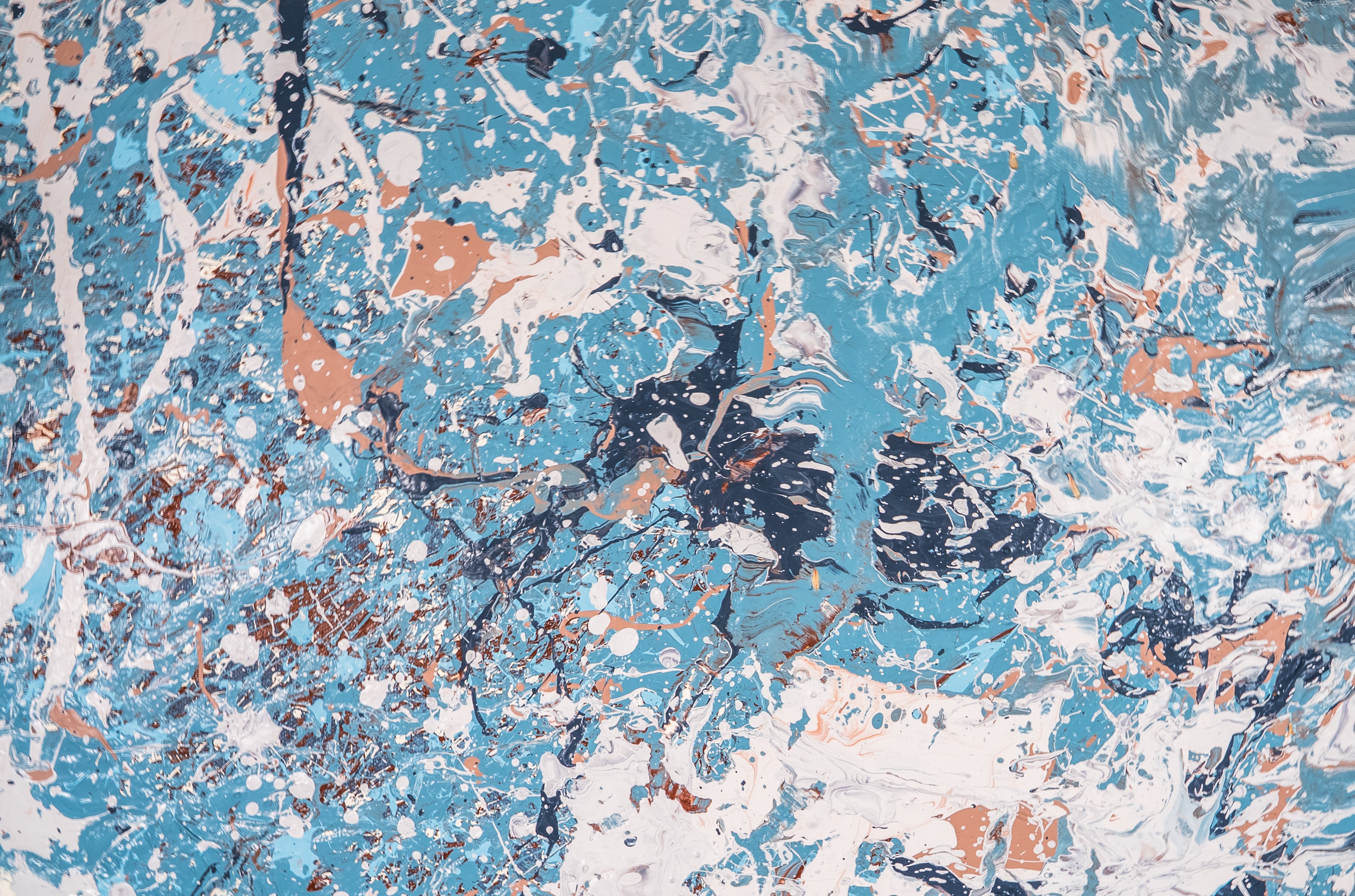 For this project, our team was suspended from a crane that lifted from 6-75ft off the ground. (9) 36" x 36" canvas were arranged below, and meticulously splattered from various Heights, creating elegant patterns of overlapping paint. This act was performed to see how we could push ourselves as artists - with the intent of spreading peace. This specific color palette is soothing, freeing, and inspires hope. These pieces look elegant on the wall in any home or business looking to bring their indoor environment to life. Upon the completion of these works, our crane operator compared these to the works of Diego Rivera & Picasso.