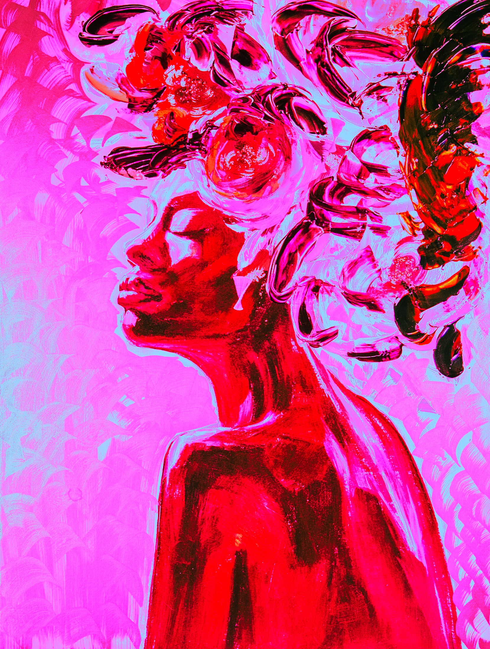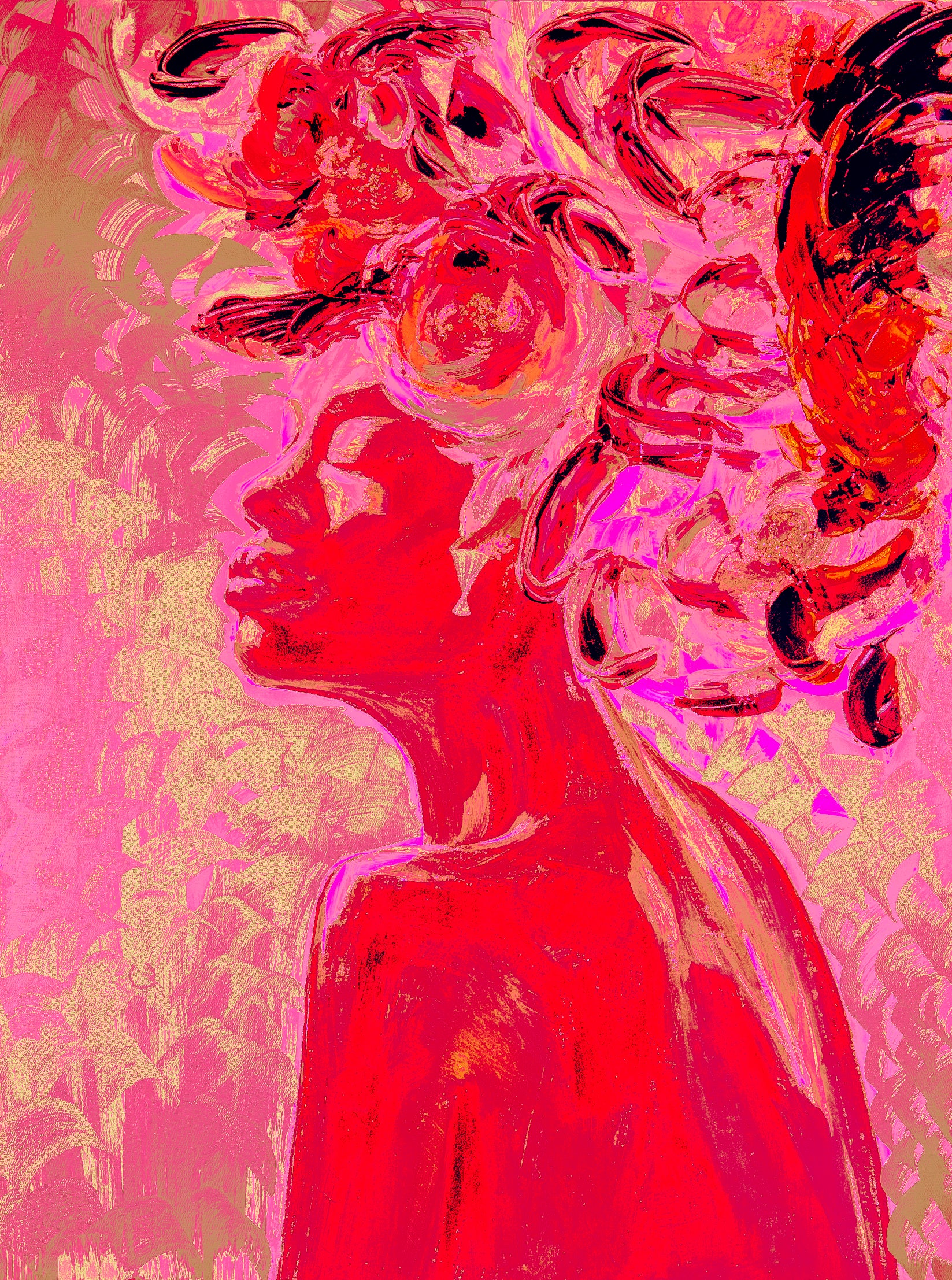 She doesn’t ask for the microphone—she architects the room. This is an ode to feminine sovereignty: steel wrapped in silk, grace without permission. I painted her as policy disguised as elegance.